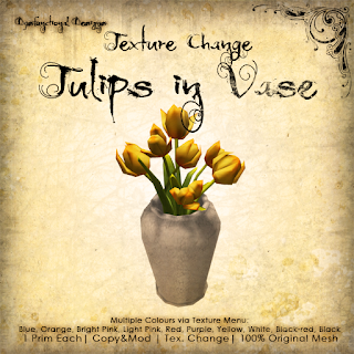 The Tulip Vase, however, is available until 11:59pm SLT Tuesday night for just 25L$ as a part of the 25L$ Tuesdays special.