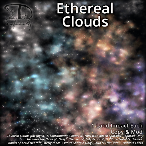 Included in this pack is a variety of themed cloud and sparkle or sparkle only combinations, each are 1 land impact at default sizing.