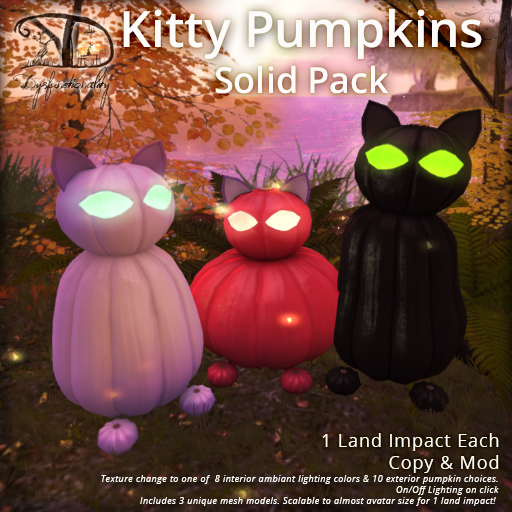Out this week is a special limited recolor of the Kitty Pumpkins in Solid tones, as well as the all-new Dewdrop Cobwebs!