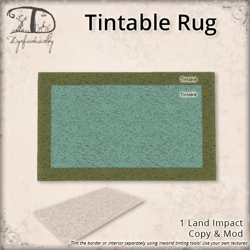 For this past 25L$ Tuesday, I was bad and didn’t tell you it was out! We have a simple Tintable rug available for just 25L$~