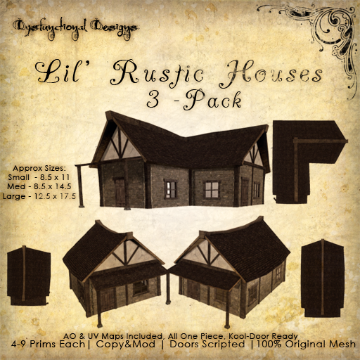 Coming in with 3 sizes, each are respectively 4, 6, and 9 prims – all linked together & including functional doors and correct physics (walls are solid! doorways are not!)