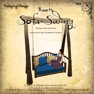 It includes 5 duo animations (2 users can sit) & 5 couple animations, a simple swing script, and is fully tintable – each cushion and the bottom cushion are individually tintable.