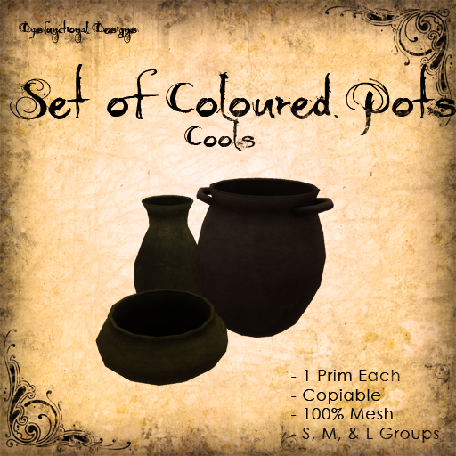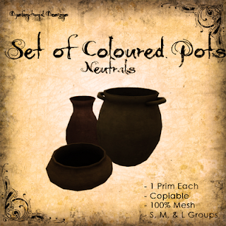 So! Here is all the images, the sets are 110L$ for a colour pack, copyable and only 1 prim, they are no mod but come in 3 pre set sizes. The freebie is 1 size only, no mod for freebies.