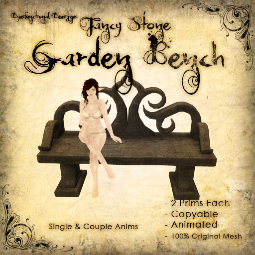 Also new is our elegant, yet bold and rustic Garden Bench! This fancy stone piece comes with 4 duo animations (up to 2 users) and 3 couples animations. At just 2 prims, it’s a gorgeous piece to be featured in your garden, park, or walkway.