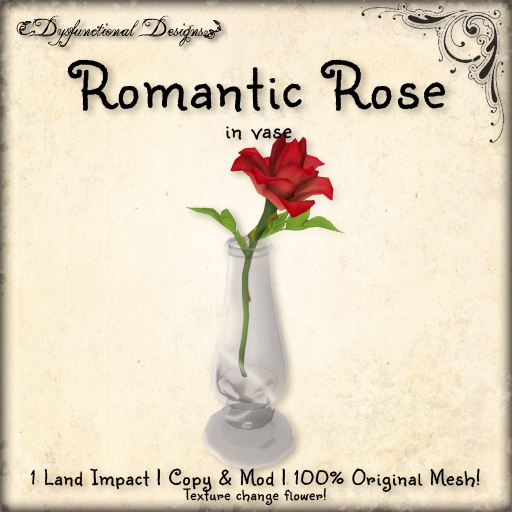 The second, our Romantic Rose in vase is a gorgeous 3D rose in a glass vase with tons of texture options!