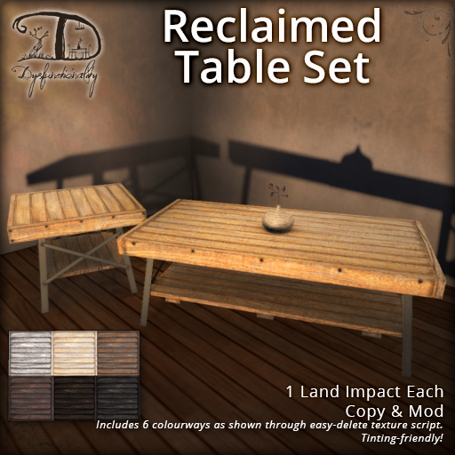 Made of aged and worn wood in 6 tones, these 1 land impact texture change tables are the perfect accent for the rustic home.