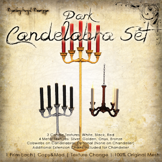 Otherwise, the majority of the releases are for sale at 95L$ and under, with a few going up higher. Namely, you’ll find the Dark Candelabra set at just 235L$ as the most expensive item in this release, but I think it’s very worth it & hope you will too.