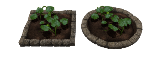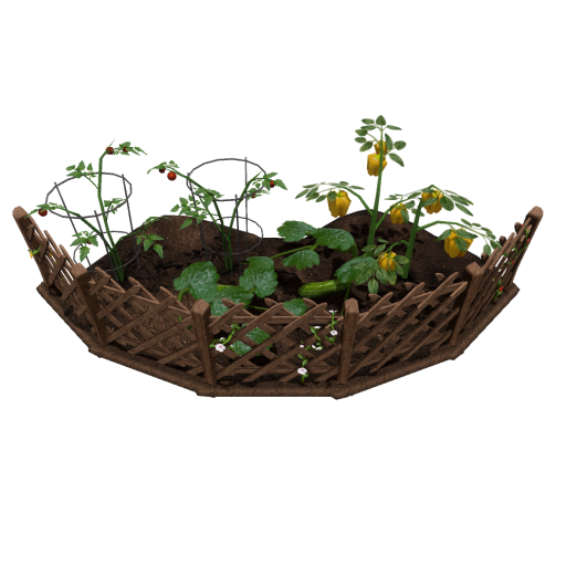 Use our Gardenbeds Kit to place the Plots inside! Single Square or Circle ones, or using any combination of the other empty varieties gives you a clean and tidy look even in semi-urban environments. For bigger beds, use the smooshing technique below.
